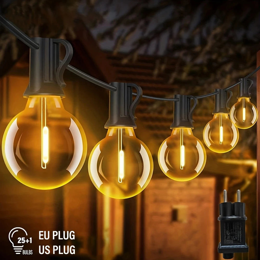Create a warm and inviting atmosphere with the TwinkleTrail. Designed with classic round G40 bulbs, this durable light string is perfect for decorating patios, gardens, balconies, cafes, or event spaces. Its high-voltage design ensures bright and stable illumination, while the strong weather-resistant construction makes it suitable for both indoor and outdoor use. Easy to install and connect, it adds charm and elegance to any space, whether for daily use or special occasions.